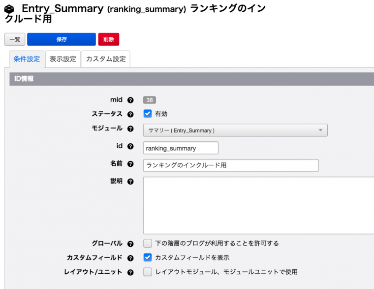 ポストインクルード用のモジュールIDを設定する